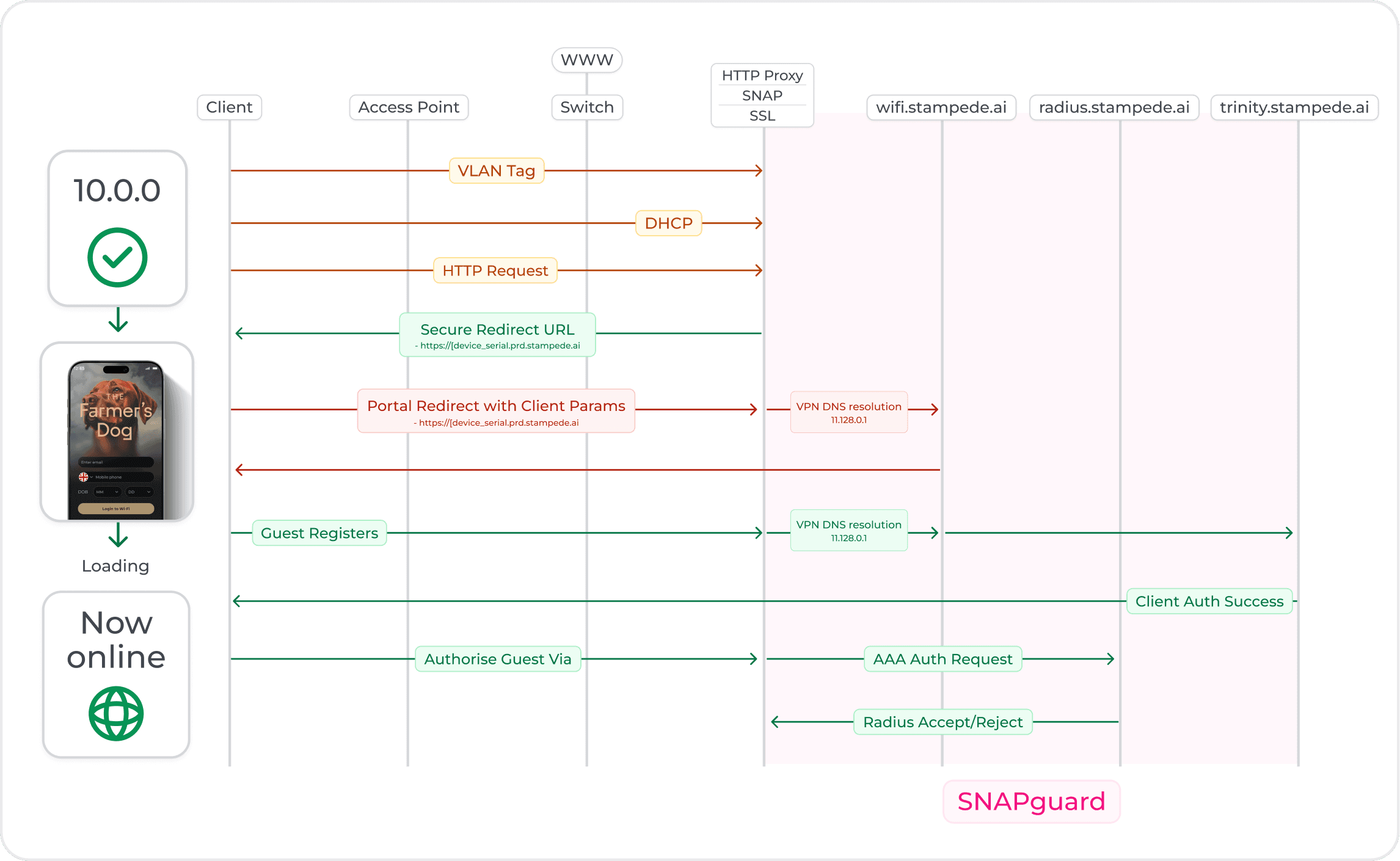 SNAPguard combines a pre-provisioned, on-site gateway with a virtual cloud network, giving Stampede direct control over how guest devices authenticate, connect and behave.